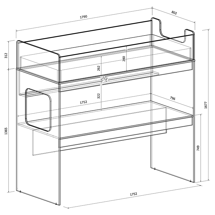 Высота кровати чердака всего 1677 мм.